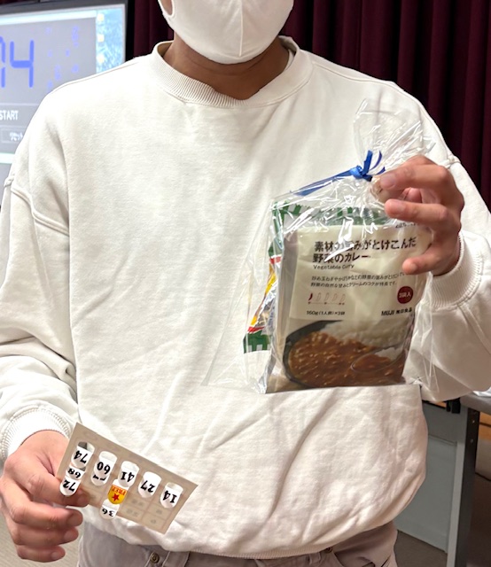 プログラムが終了 お弁当希望者の方たちにお弁当を配り